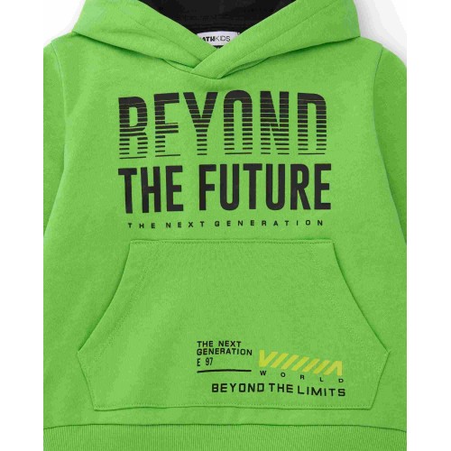 a contrasting hood. Front print with the phrases "Beyond the Future" and "The Next