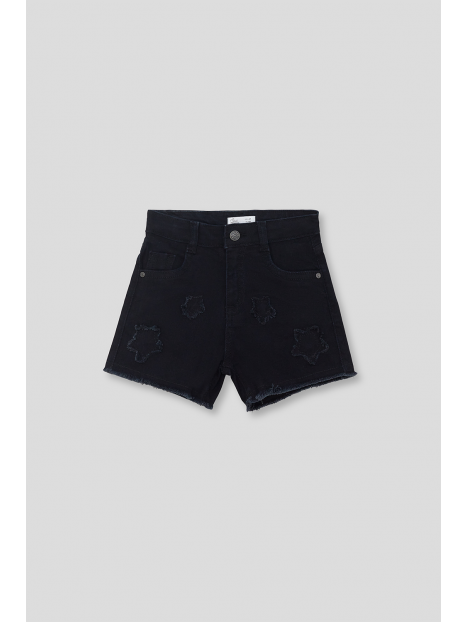 Denim shorts for girls aged 2 to 16 years in black. Design with frayed details