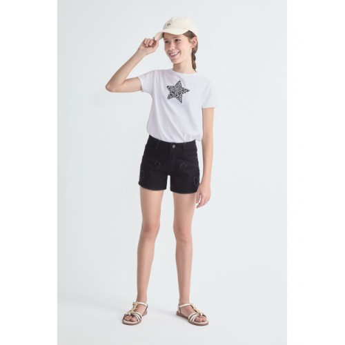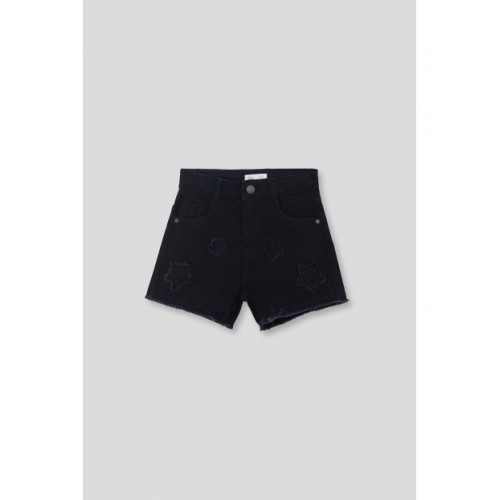 Denim shorts for girls aged 2 to 16 years in black. Design with frayed details