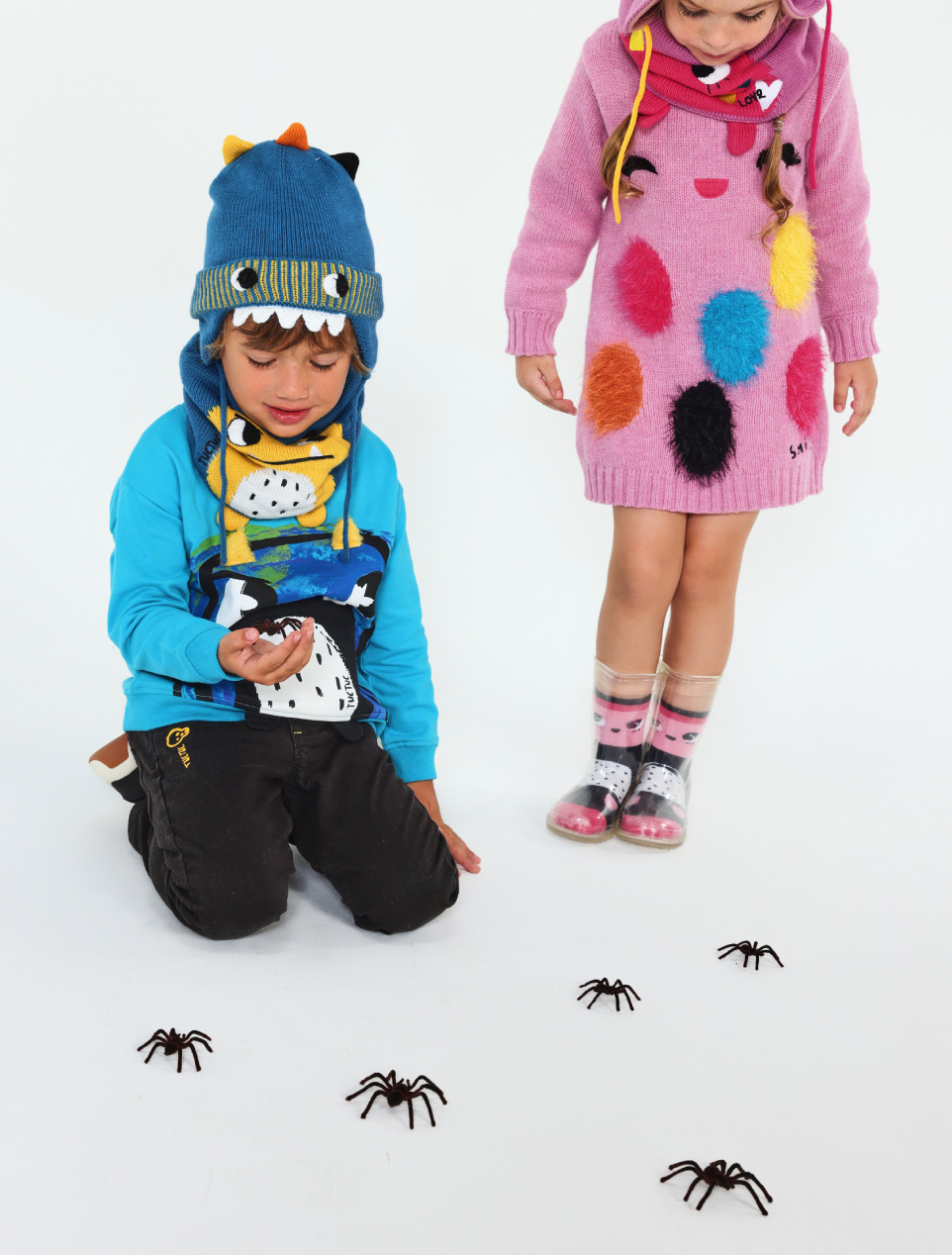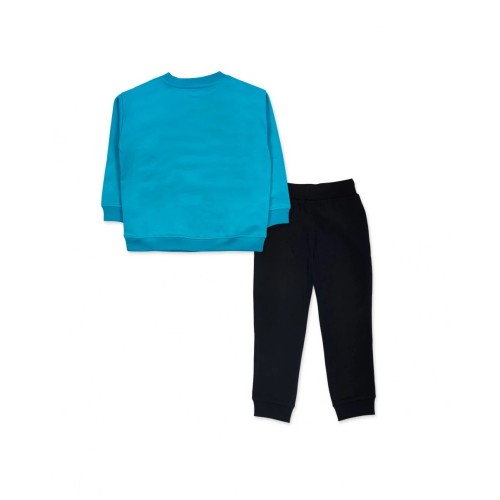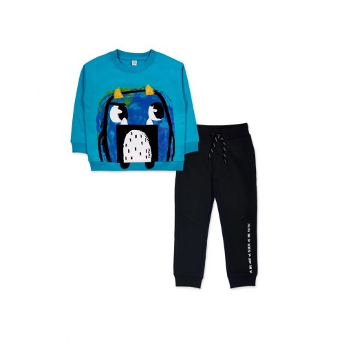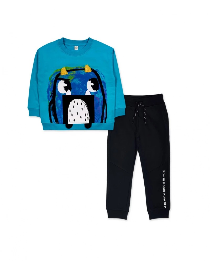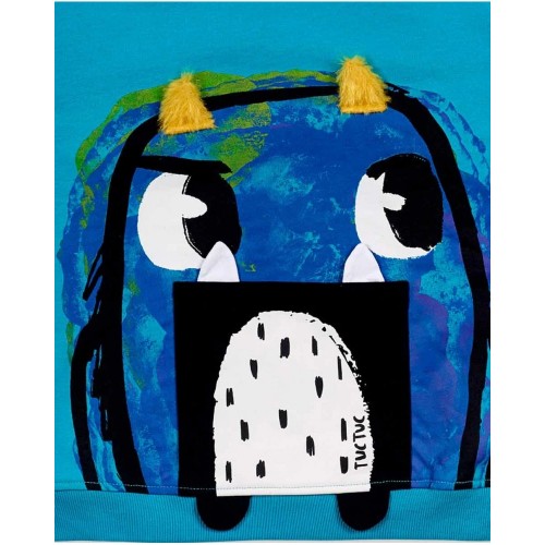 Two-piece plush set for a boy. Plush sweatshirt, blue with monster.