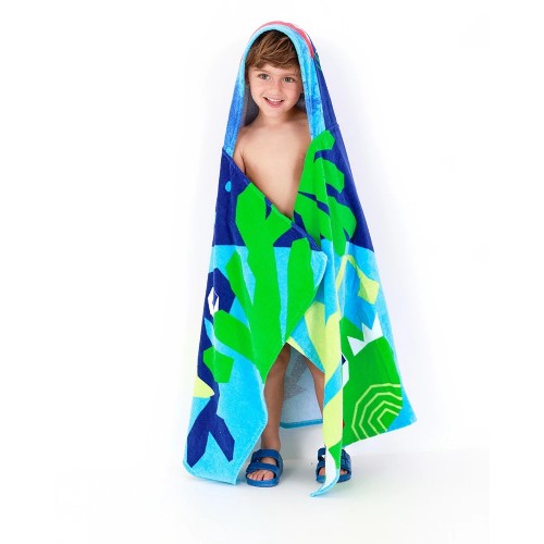 Blue and green children's poncho towel with shark