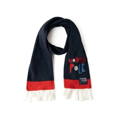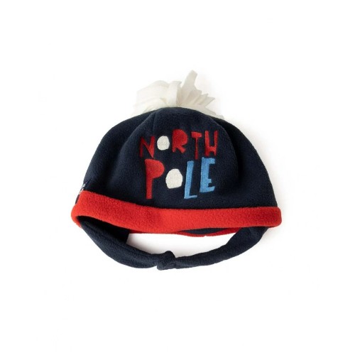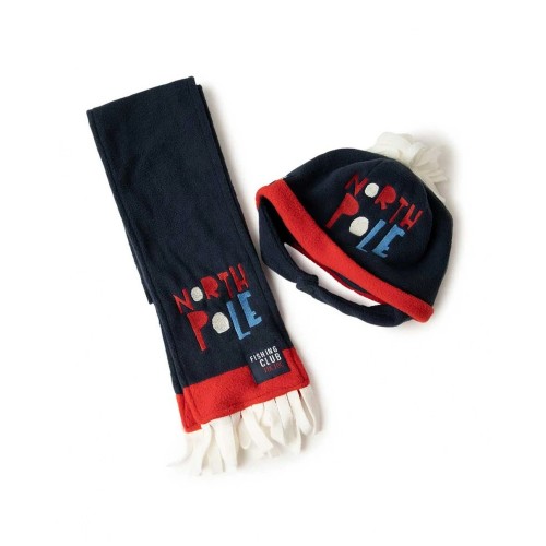 Hat with embroidered letters and pompom and blue fleece scarf for boys with embroidered letters