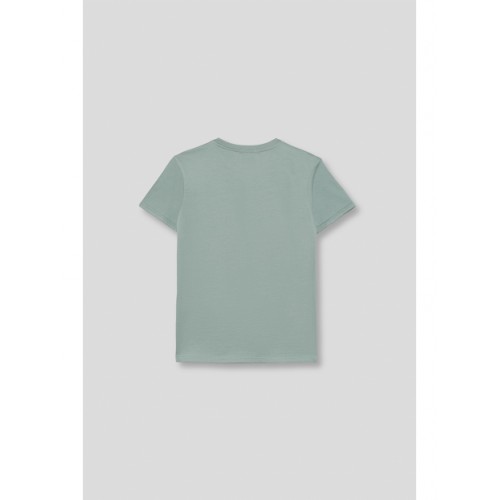 Boys' T-shirt, sizes 2-16 years. Flocked detail on the front. Soft and comfortable fabric.