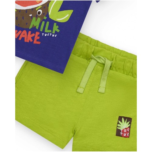 Boy's set with coconut t-shirt and green Bermuda shorts