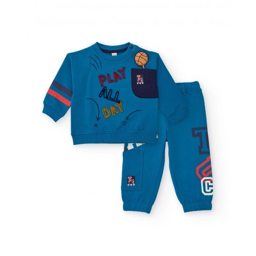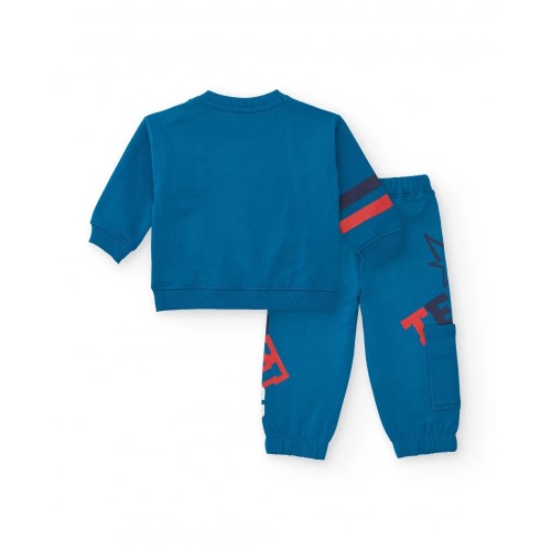 Boys blue sweatshirt and pants set with a print and embroidered details