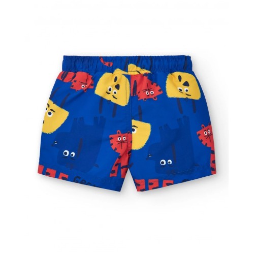 Collection: HEY BUDDIESCategory: Swim boxerBoys' blue swim trunks with a "HEY FRIENDS" de..