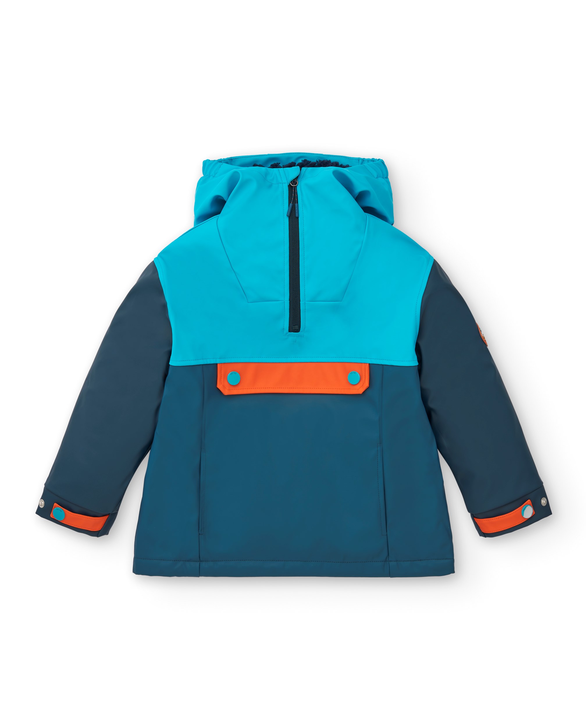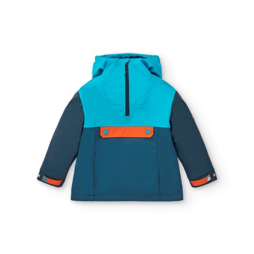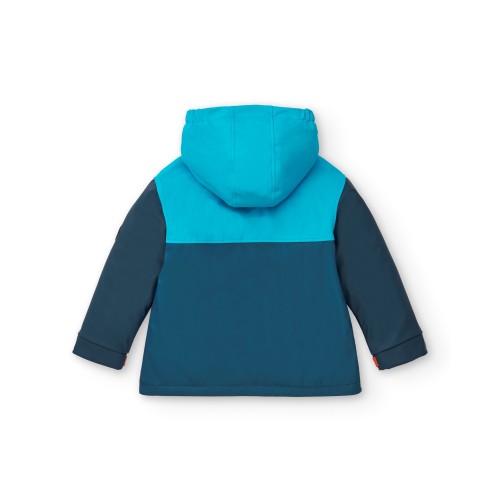 Boys' jacket made from a water-resistant material and lined for added warmth.