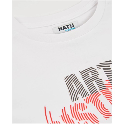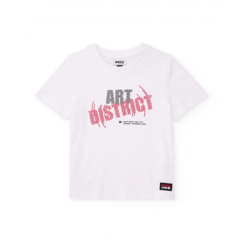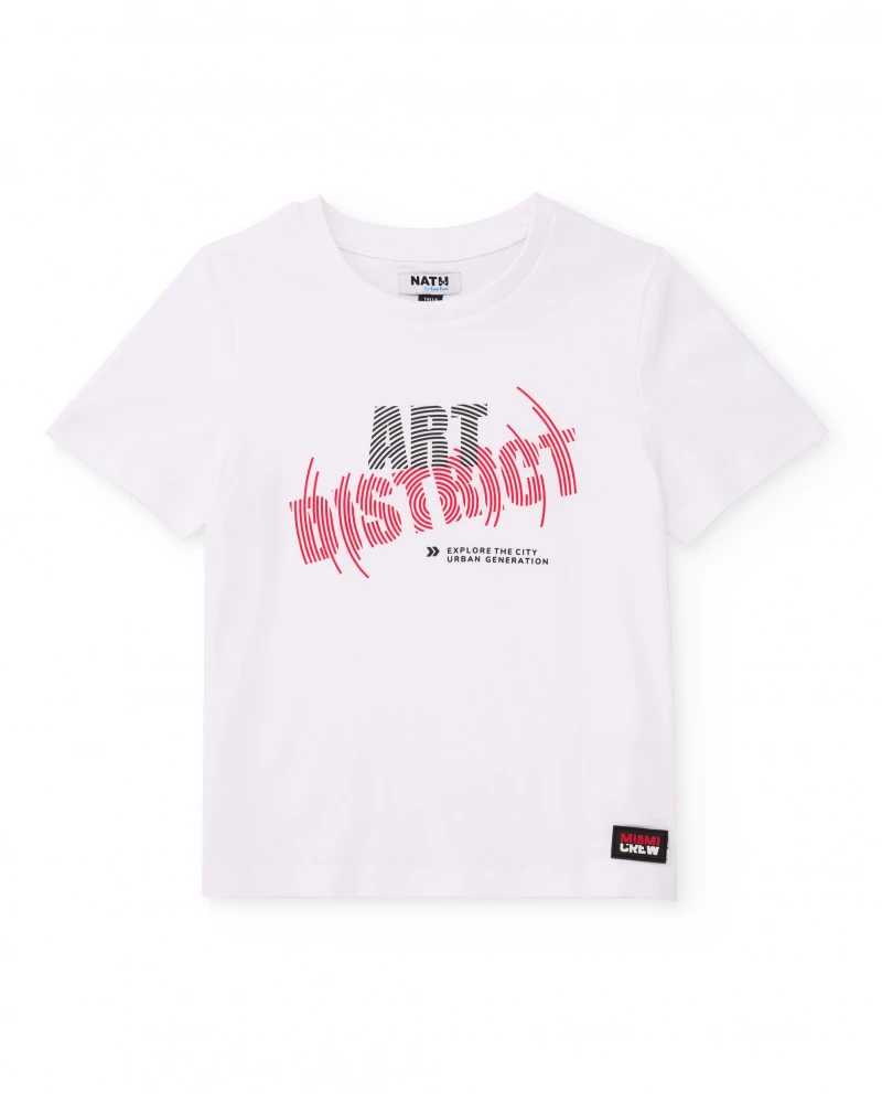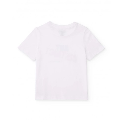 Boys’ white T-shirt made from soft jersey fabric, providing all-day comfort. It features