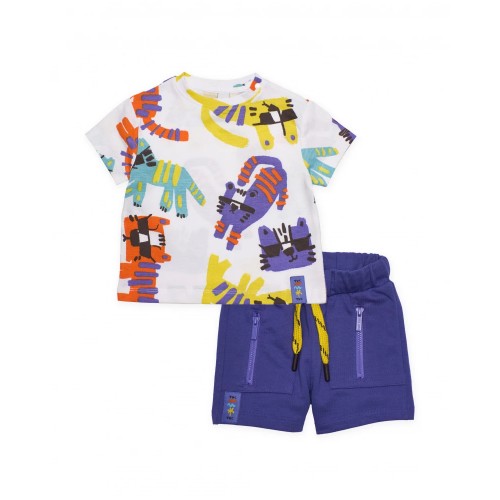 Collection: TUC TUCCategory: SetBoys’ set featuring a blue T-shirt and printed shorts, designed to p..
