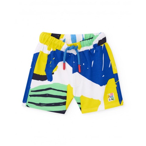 The shorts, with an elastic waistband for a comfortable fit, showcase a colourful artistic print of