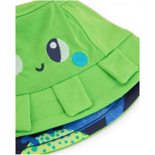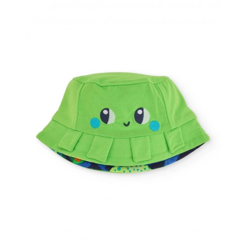 Reversible hat for boys in a vibrant green shade, designed to provide comfort and a