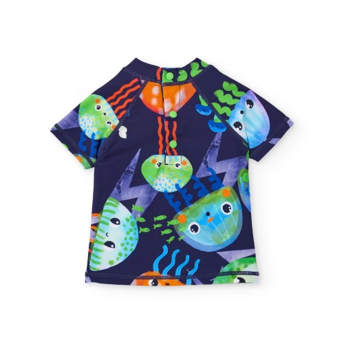 Boy’s navy swim top made from a stretchy, quick-drying fabric that provides comfort