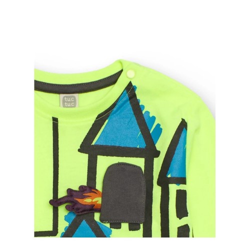Boys' long-sleeved T-shirt in neon green, made from soft cotton jersey.