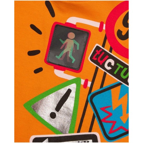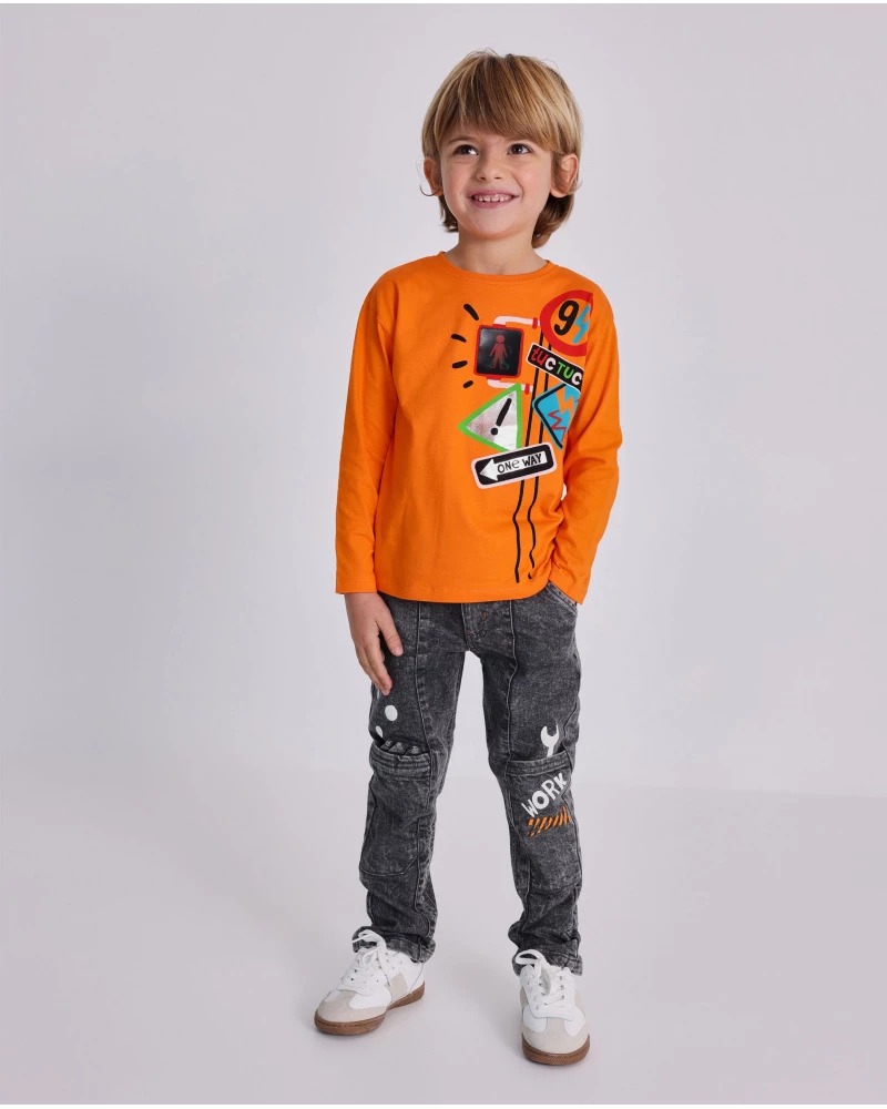 Boys long-sleeved T-shirt in orange with traffic sign print