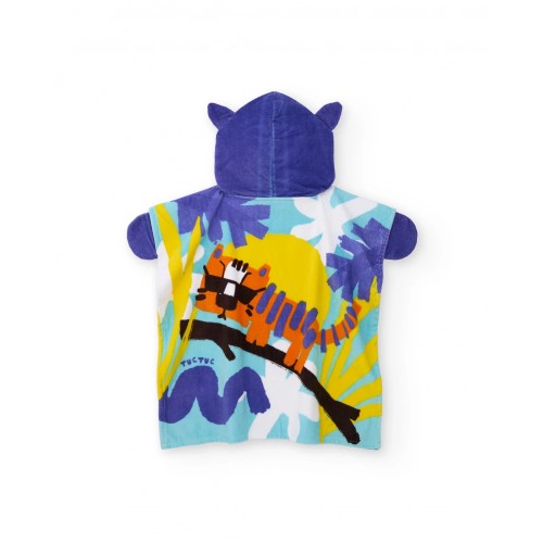 Multicolour poncho for boys, made from a soft and absorbent terry fabric ideal for