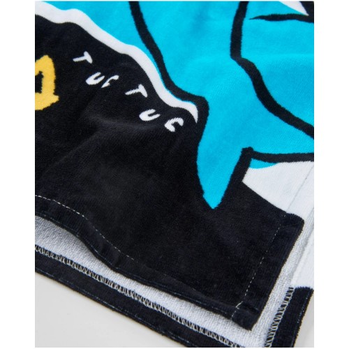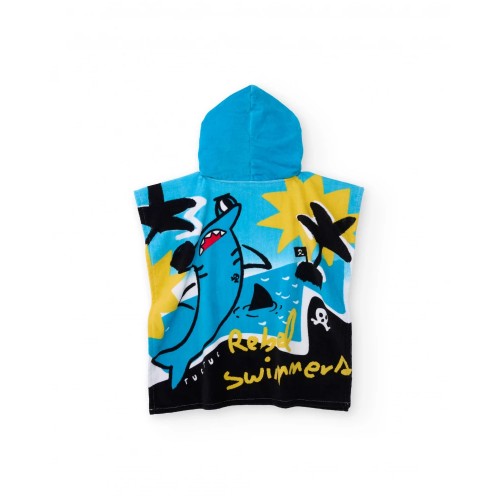Poncho for boys in turquoise, featuring a design inspired by a pirate shark. Made from