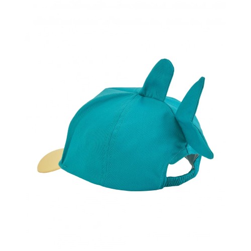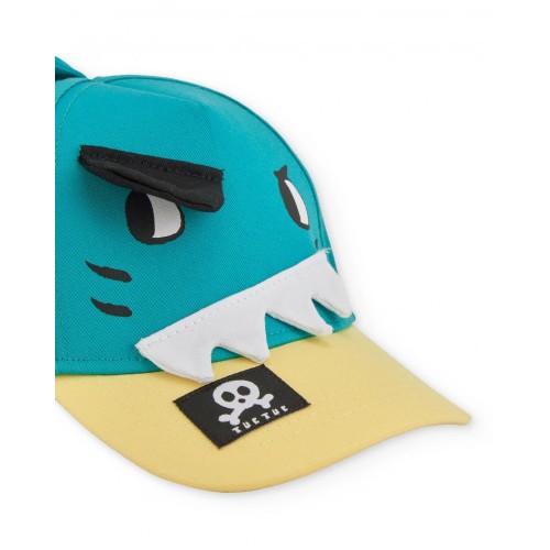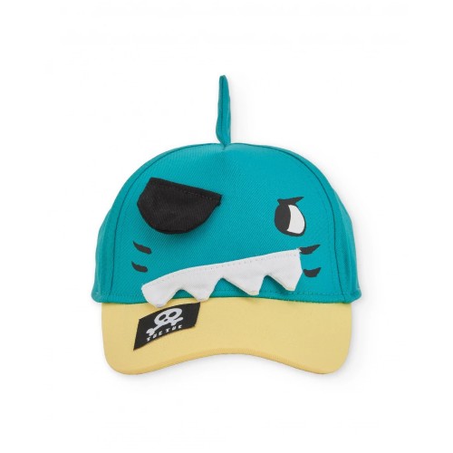 Turquoise boys’ cap with a yellow brim, made from a lightweight and comfortable fabric.