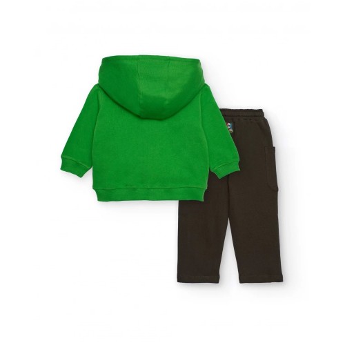 Boys' set featuring a green hoodie and matching brown long pants. The hoodie features a