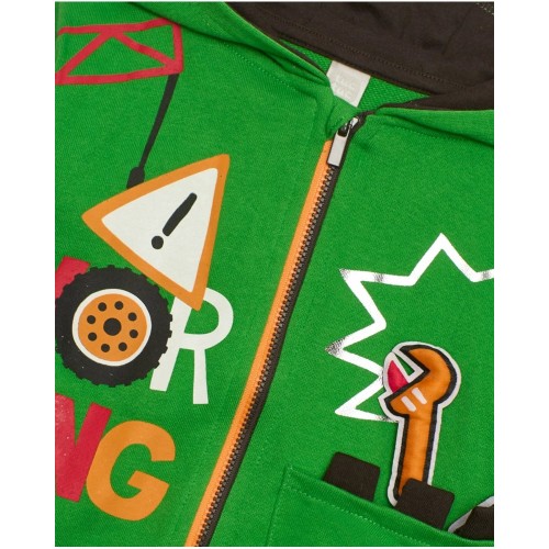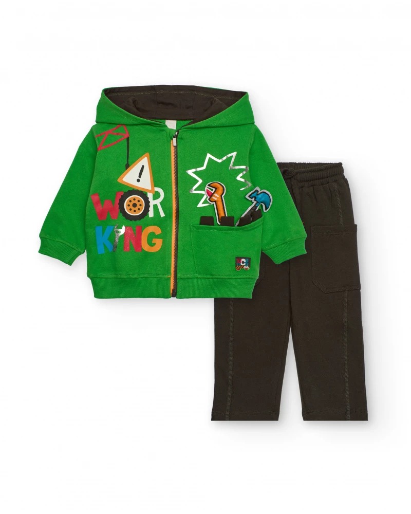 Boys set with green sweatshirt and brown pants with tool print