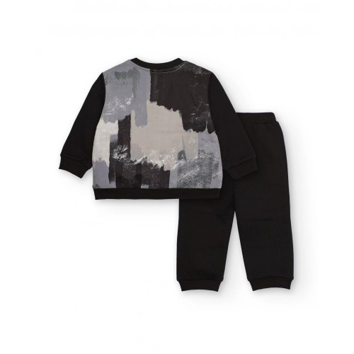 Boys sweatshirt and pants set in black with a grayish brushstroke print and green details