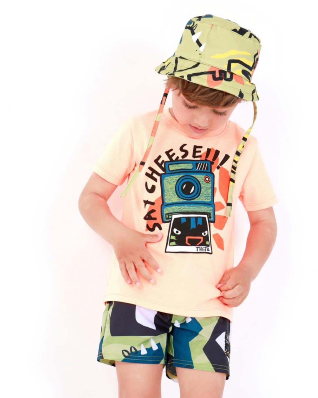 Collection: Say CheeceCategory: t-shirtBoys' orange knit T-shirt with an instant camera print ..