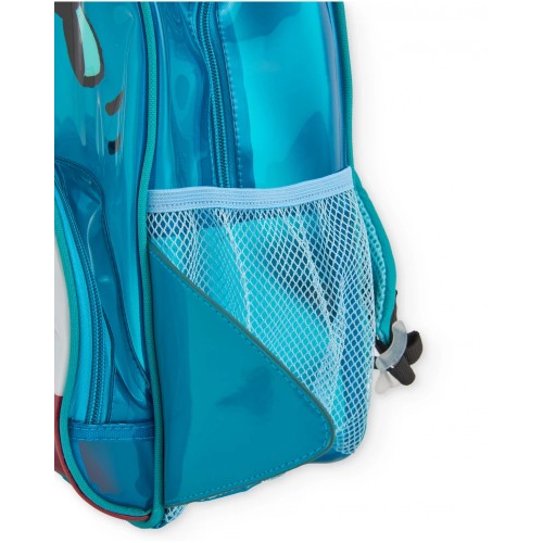 and two side fins in raised detailing, along with a large transparent front pocket that imitates