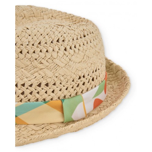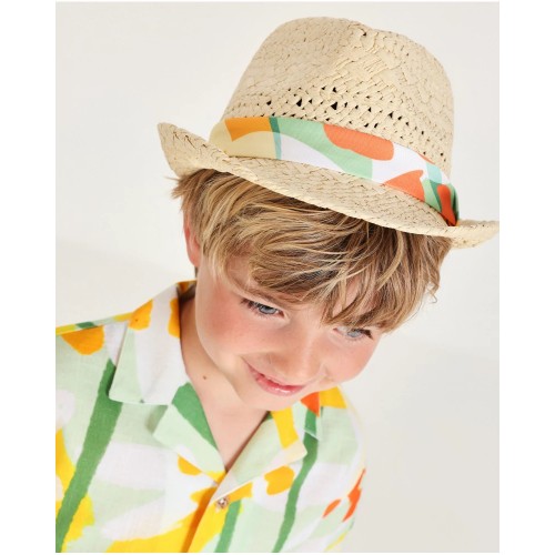 Natural-toned boys’ hat made from a lightweight woven material that provides freshness