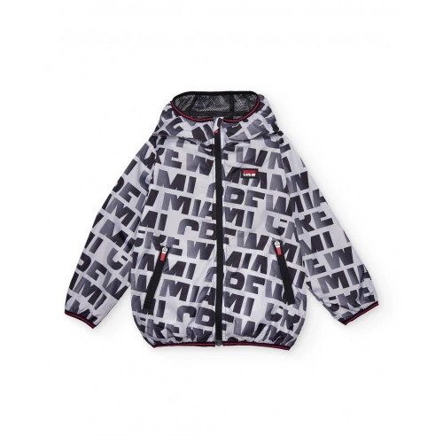 Boys’ windbreaker jacket with hood, made from a lightweight and wind-resistant fabric.