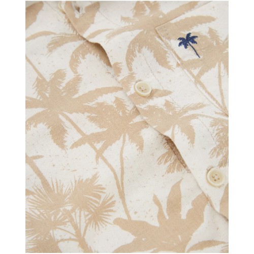 It features an all-over palm tree print in a sand tone, giving it a summery and relaxed look.