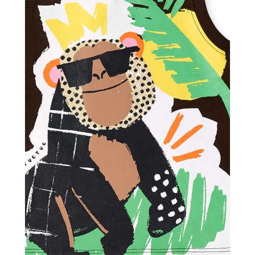 White knit t-shirt with monkey print for boys.Collection: Banana RecordsCategory: T-shirts..