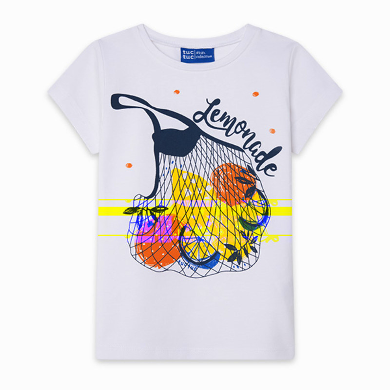 CAMISETA PUNTO BOLSA CON FRUTAS NIÑA BLANCA LEMONADE