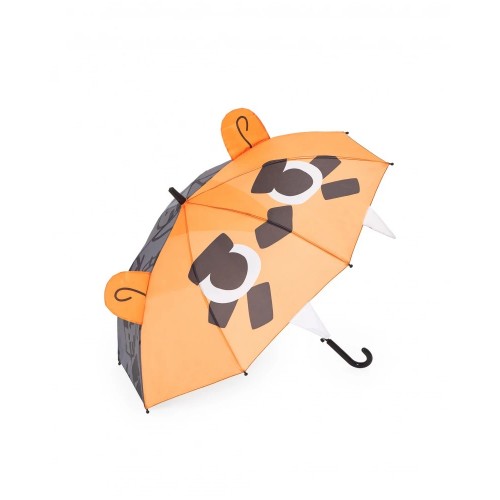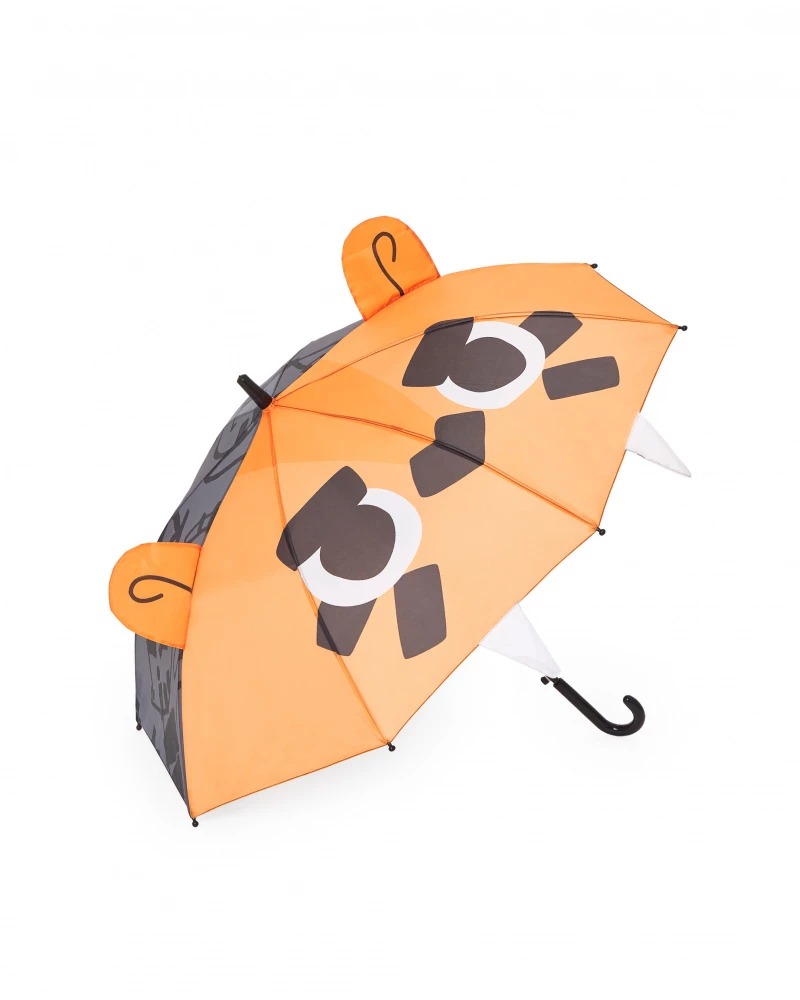 Fun children's umbrella with a tiger design in orange tones and three-dimensional