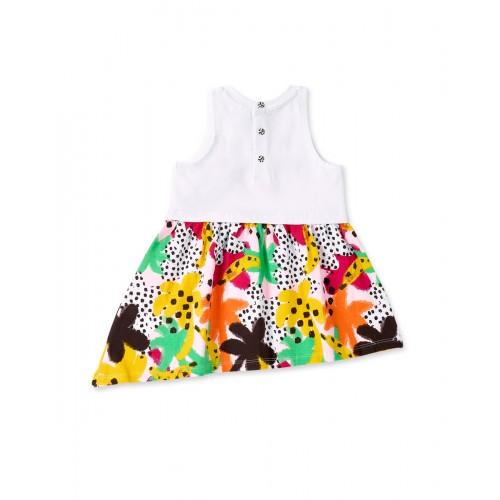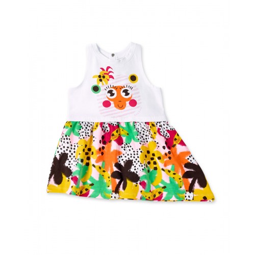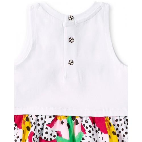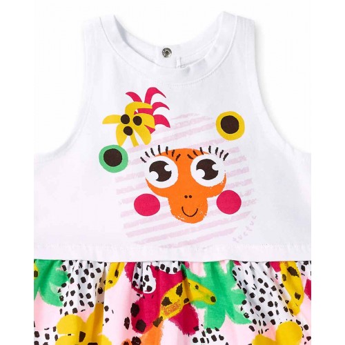 White swimsuit with tropical print and red fringes for girls. Collection: Banana RecordsCa..