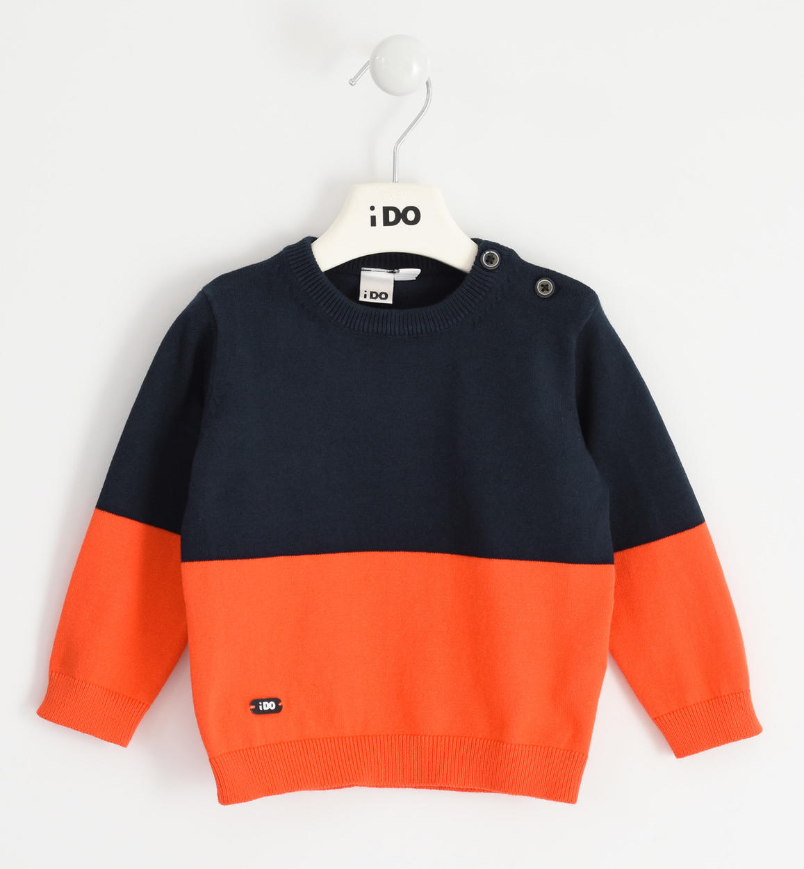 Crew neck tricot with colour blocks for boy from 30 months to 7 years iDO