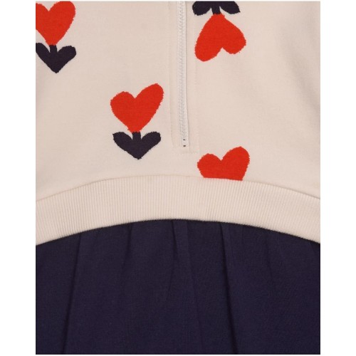 Girls' dress with a mixed-color design featuring a raw-colored plush bodice and a