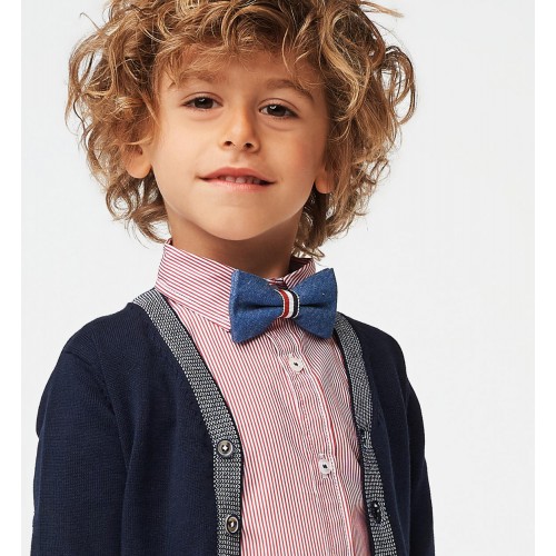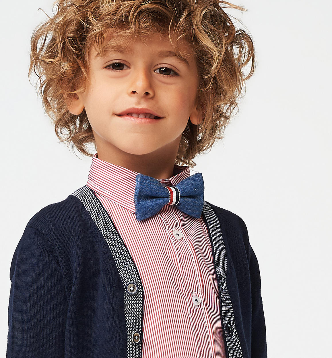 Κομψό γαλάζιο παπιγιόν εφέ τζιν για αγόρια και έγχρωμες πινελιές. Άνετο ρυθμιζόμενο κλείσιμο με ιμάντα