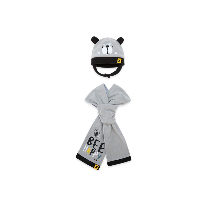 GREY TEDDY FLEECE HAT AND SCARF FOR BOYS BEE HAPPY