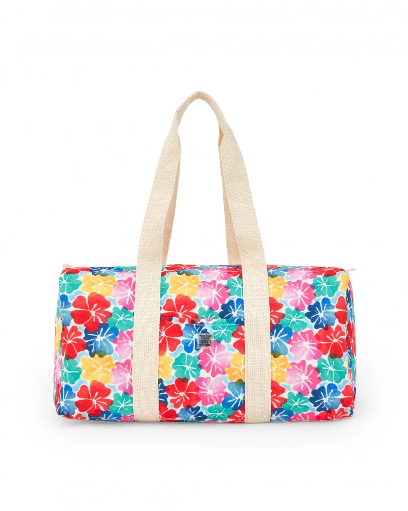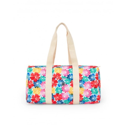 Girls' bag with a multi-colored floral print. Designed with ecru handles.