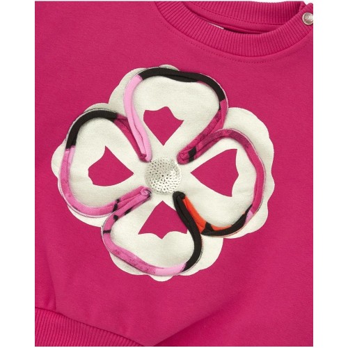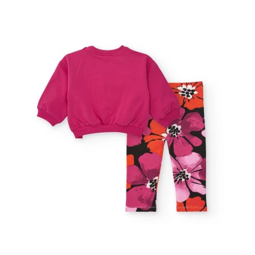 Two-piece set for girls featuring a fuchsia sweatshirt with a floral print on the chest and long