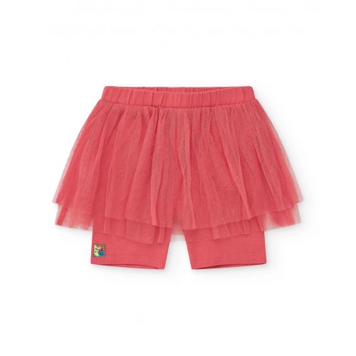 Girl's set with white t-shirt with tulle sleeves and pink leggings with tulle skirt