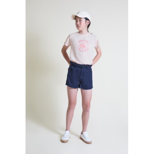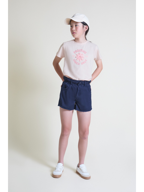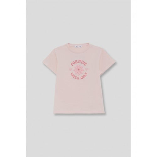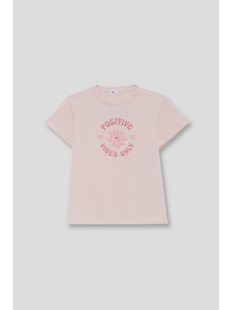Girls' short-sleeved T-shirt available in sizes 2 to 16 years. Light pink with a front