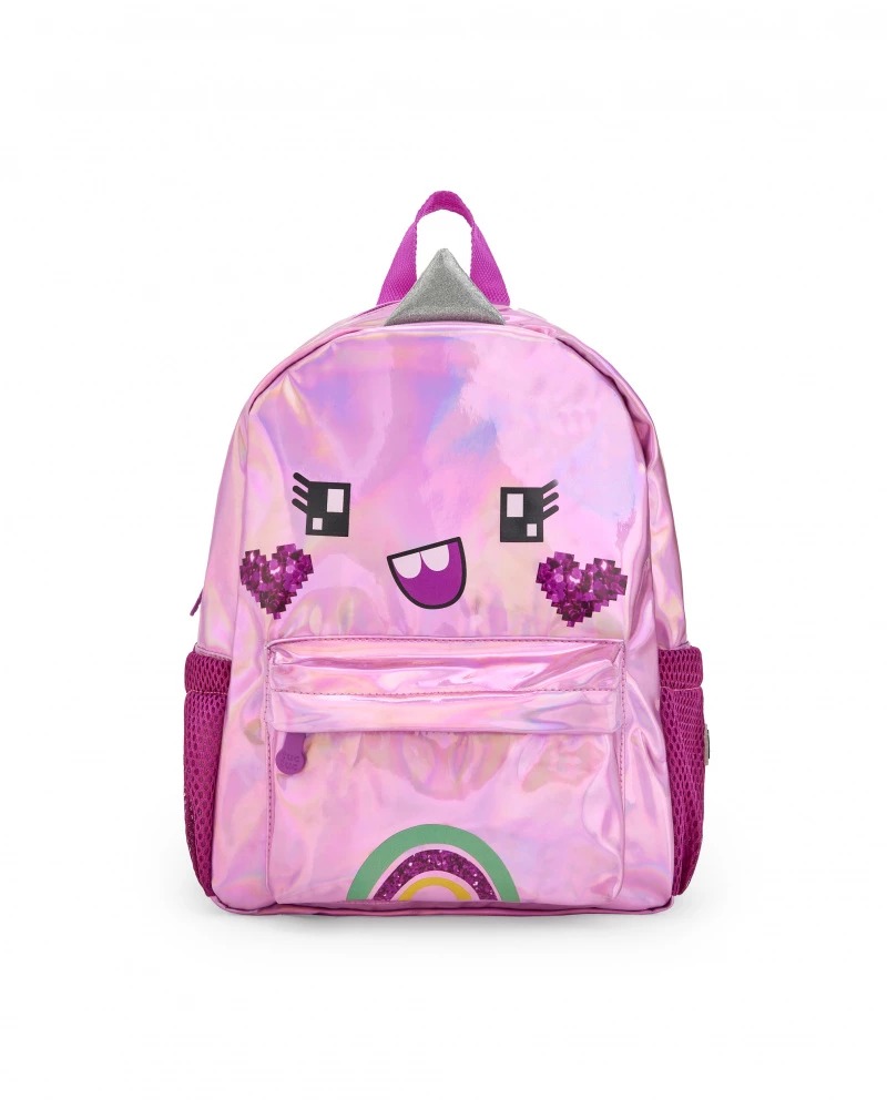 Girls backpack in bright pink with smiley face design Cyber Dino collection