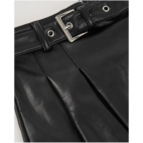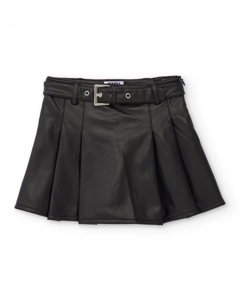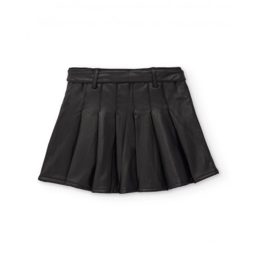 Girls' skirt made of black faux leather with a pleated design that adds movement and style.