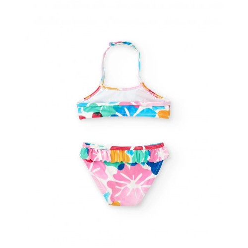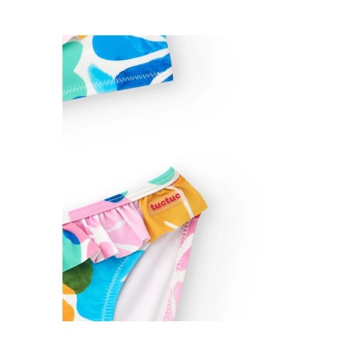 White girl's swimsuit with floral print and ruffles