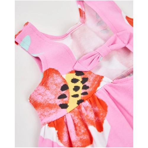 print in vibrant colours, giving it a cheerful, summery look. The design includes shoulder straps