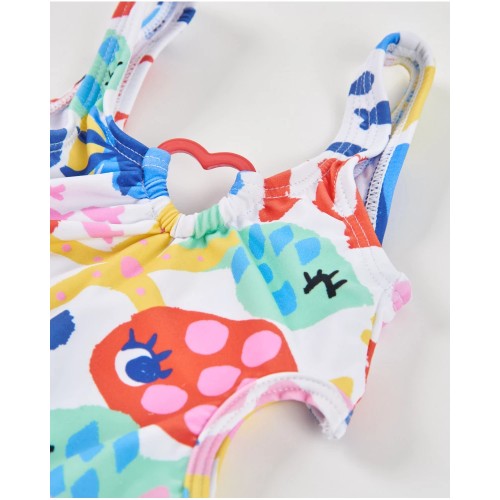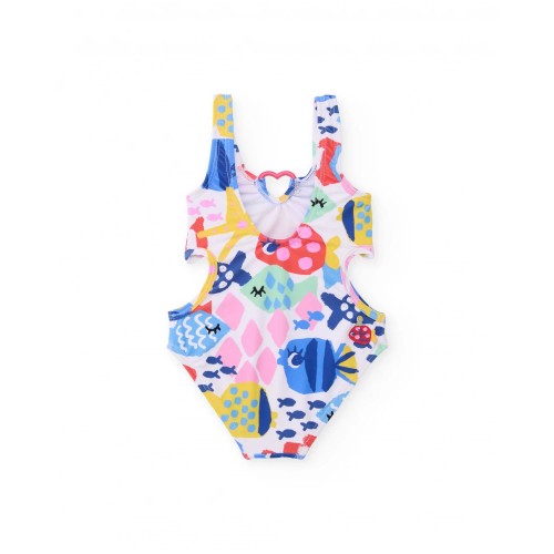 Girls’ swimsuit with a white base, made from a soft, durable and quick-drying fabric, perfect