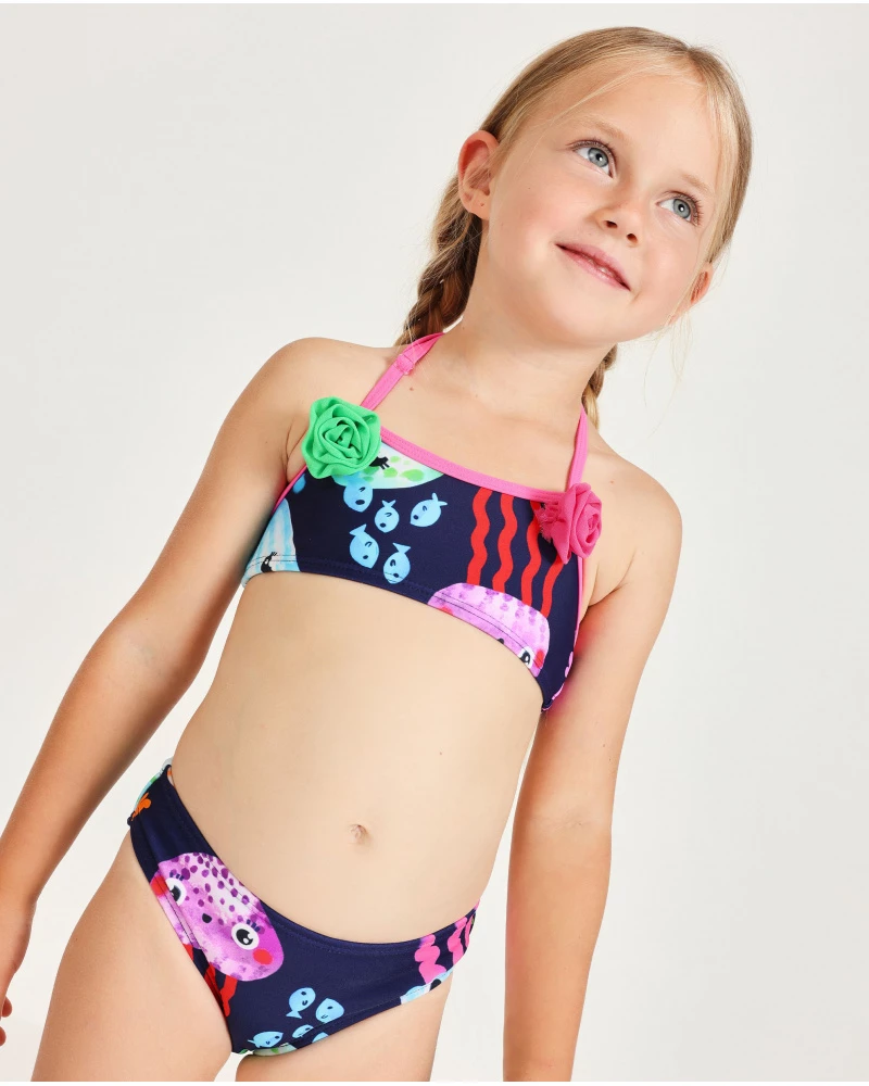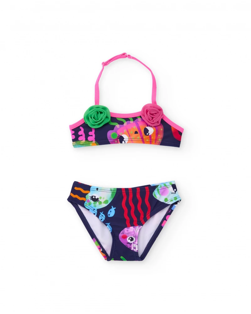 Bikini for girls in navy blue, made from soft and stretchy fabric that ensures comfort