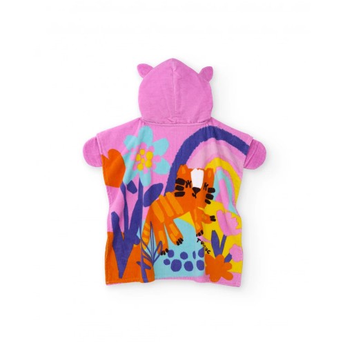 Pink poncho for girls, made from a soft and absorbent terry fabric ideal for drying