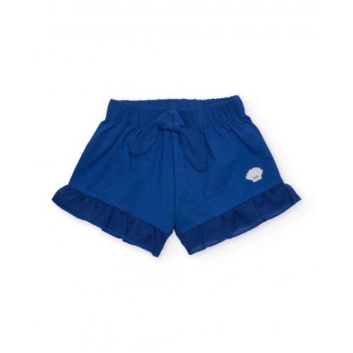 deep blue shorts include an elasticated waistband for a comfortable fit and a ruffle at the hem