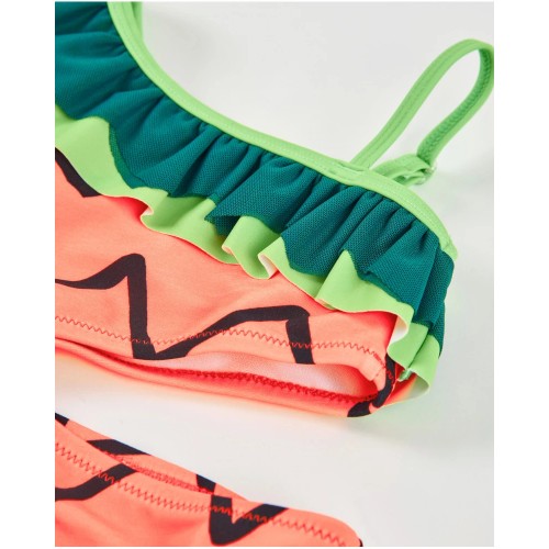 Girls knitted swimsuit with asymmetrical ruffle